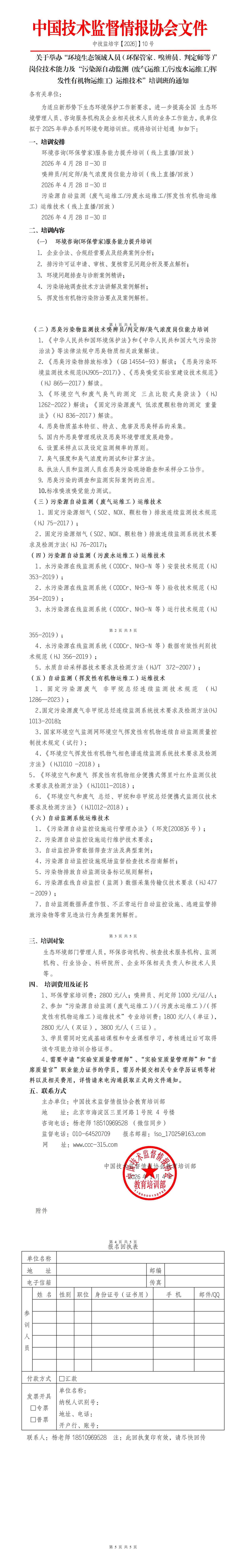 2026年关于举办“环保管家、废水/废气运维工及嗅辨员等环保系列培训的通知