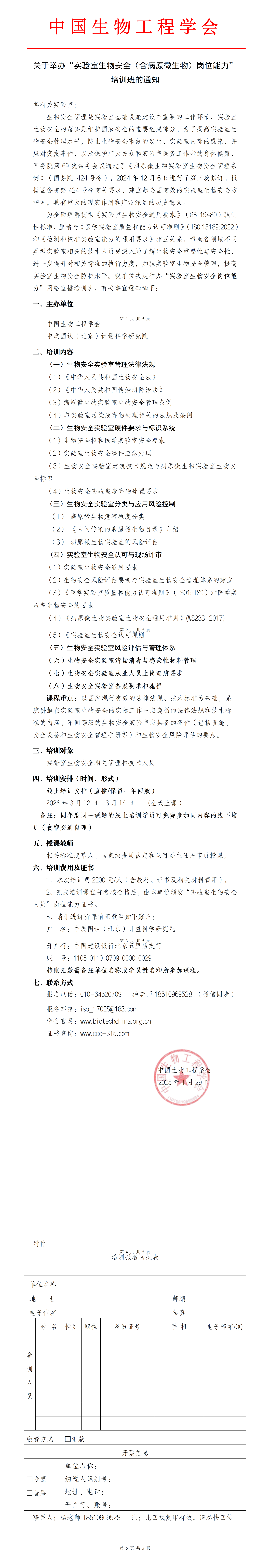 关于2026年3月12日-14日举办“实验室生物安全岗位能力”培训班的通知